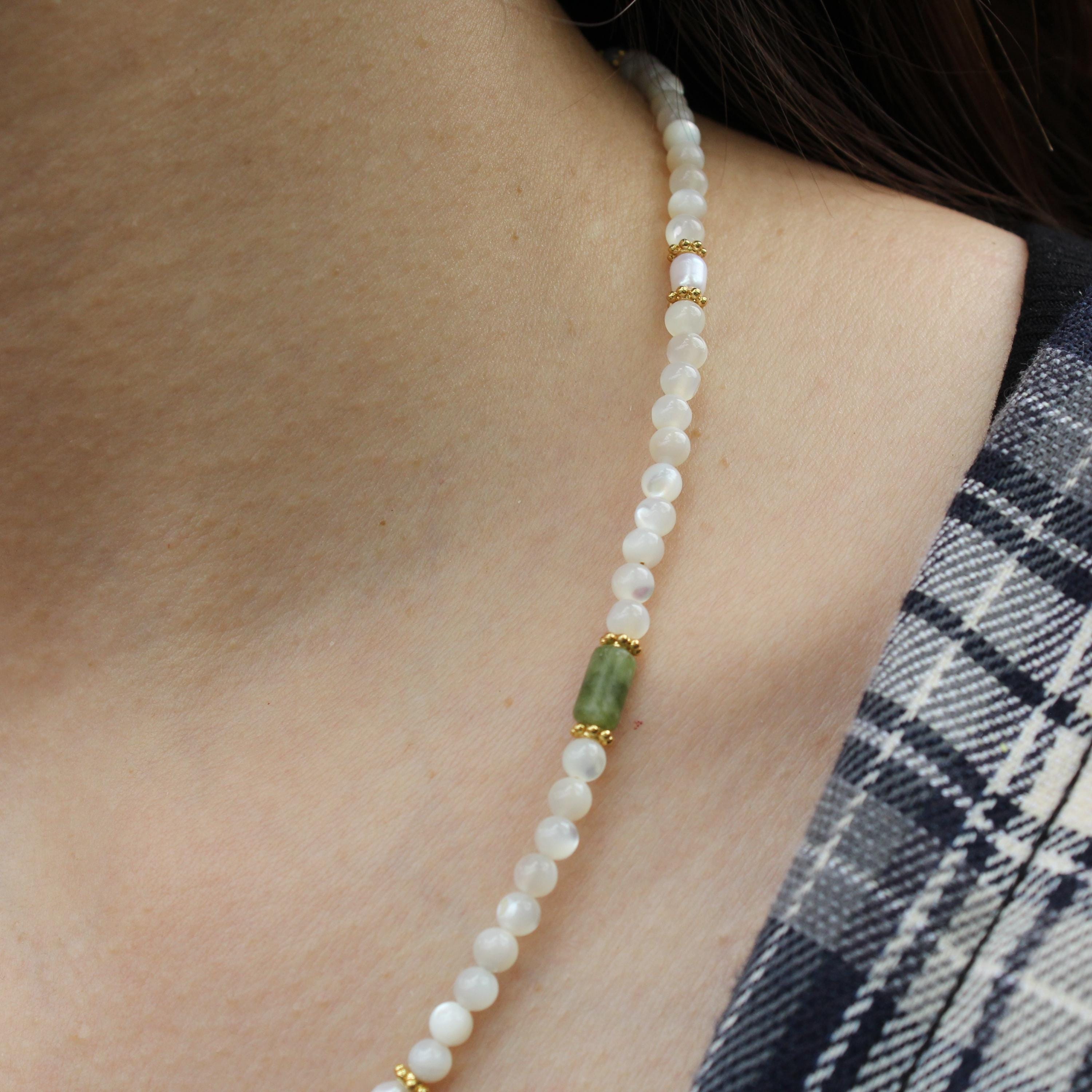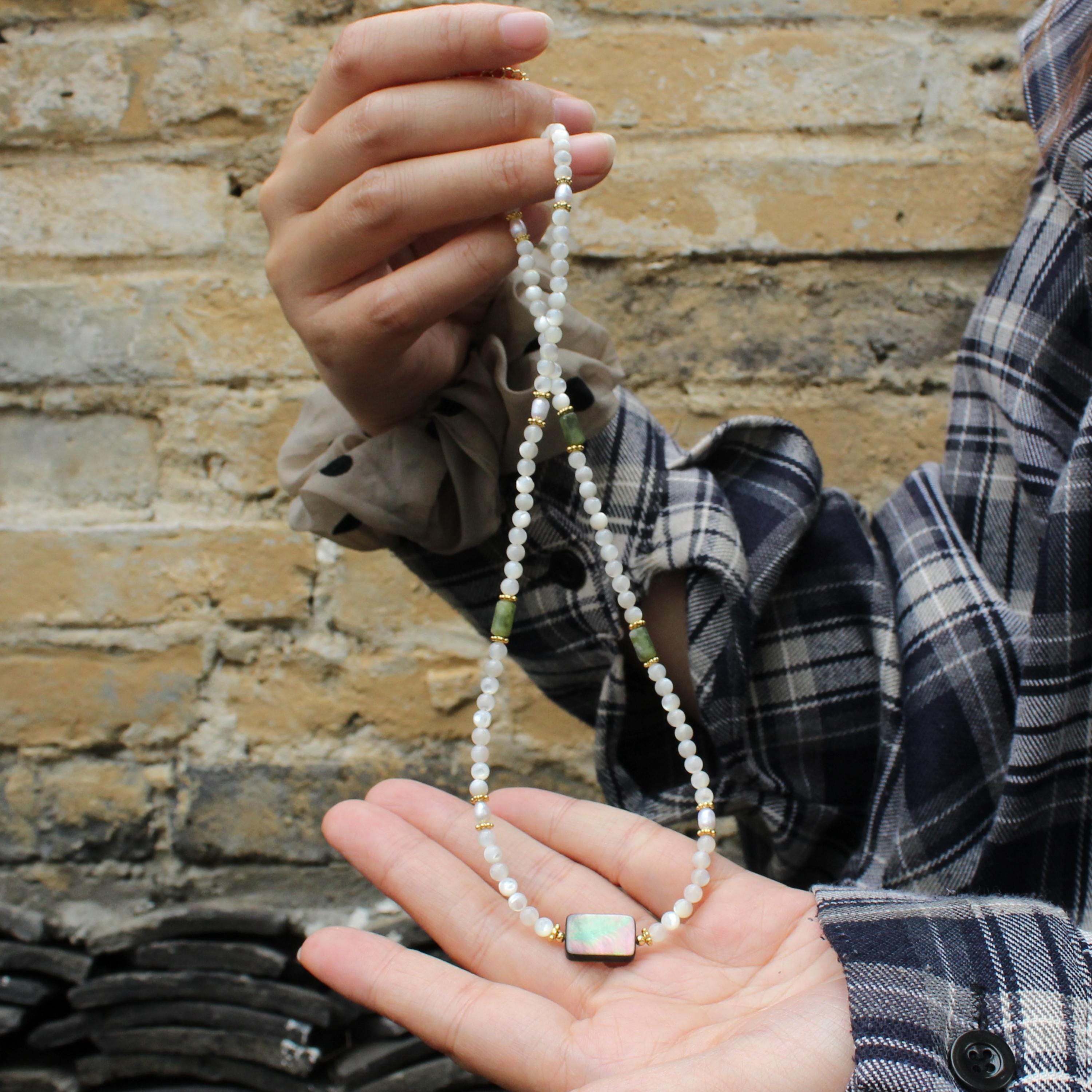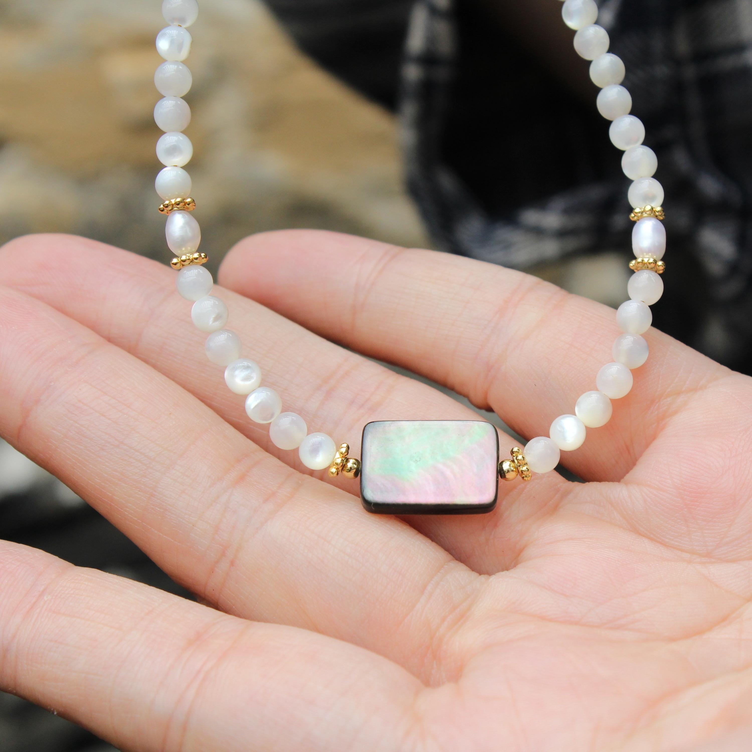 This ocean-inspired necklace features a stunning mix of abalone shell, limpet shell, and freshwater pearls. Each natural element is hand-selected and polished to enhance its organic shine and iridescence. Abalone and limpet shells carry the calming energy of the sea, while freshwater pearls symbolize purity and femininity. A perfect piece for beach lovers, spiritual seekers, or anyone drawn to nature's beauty.