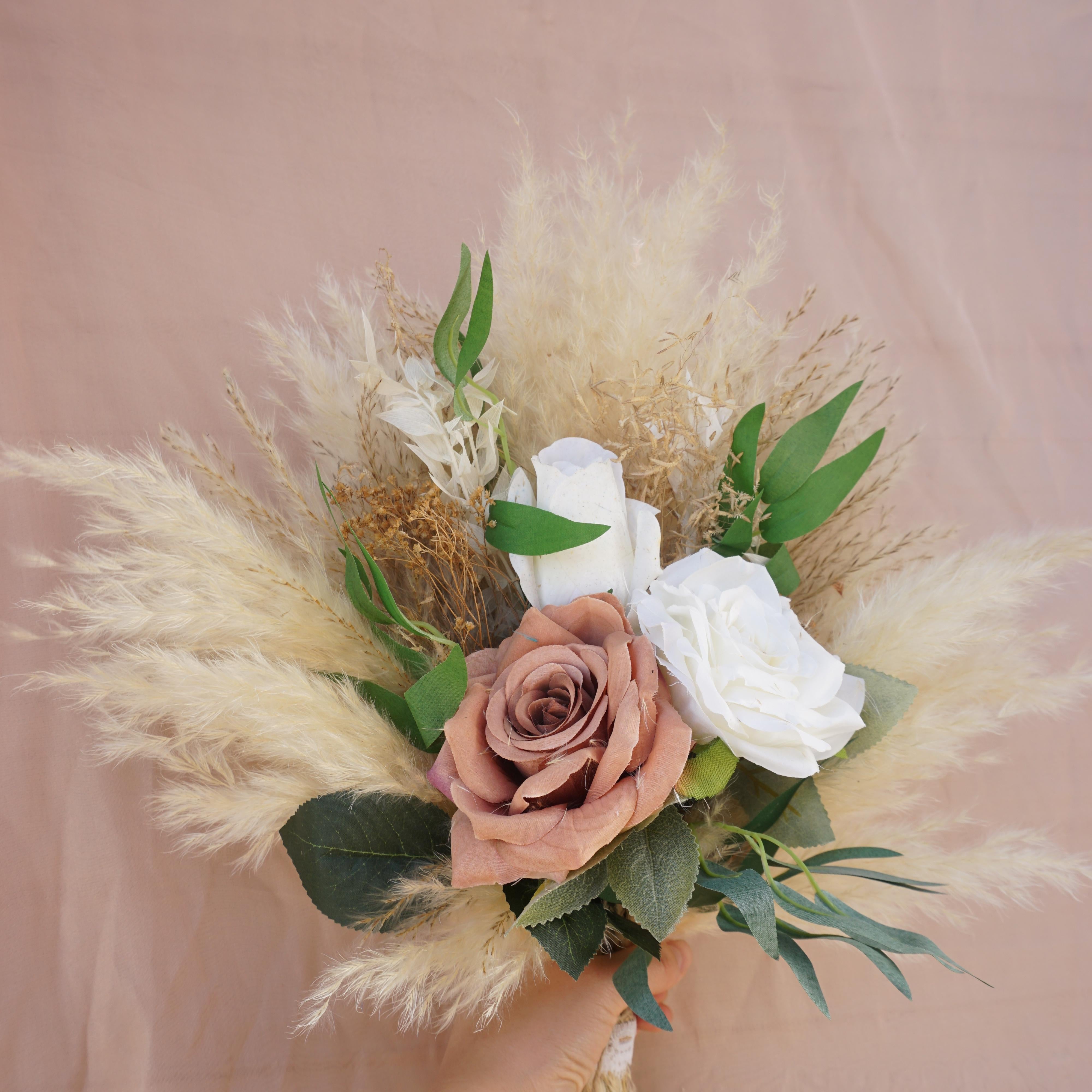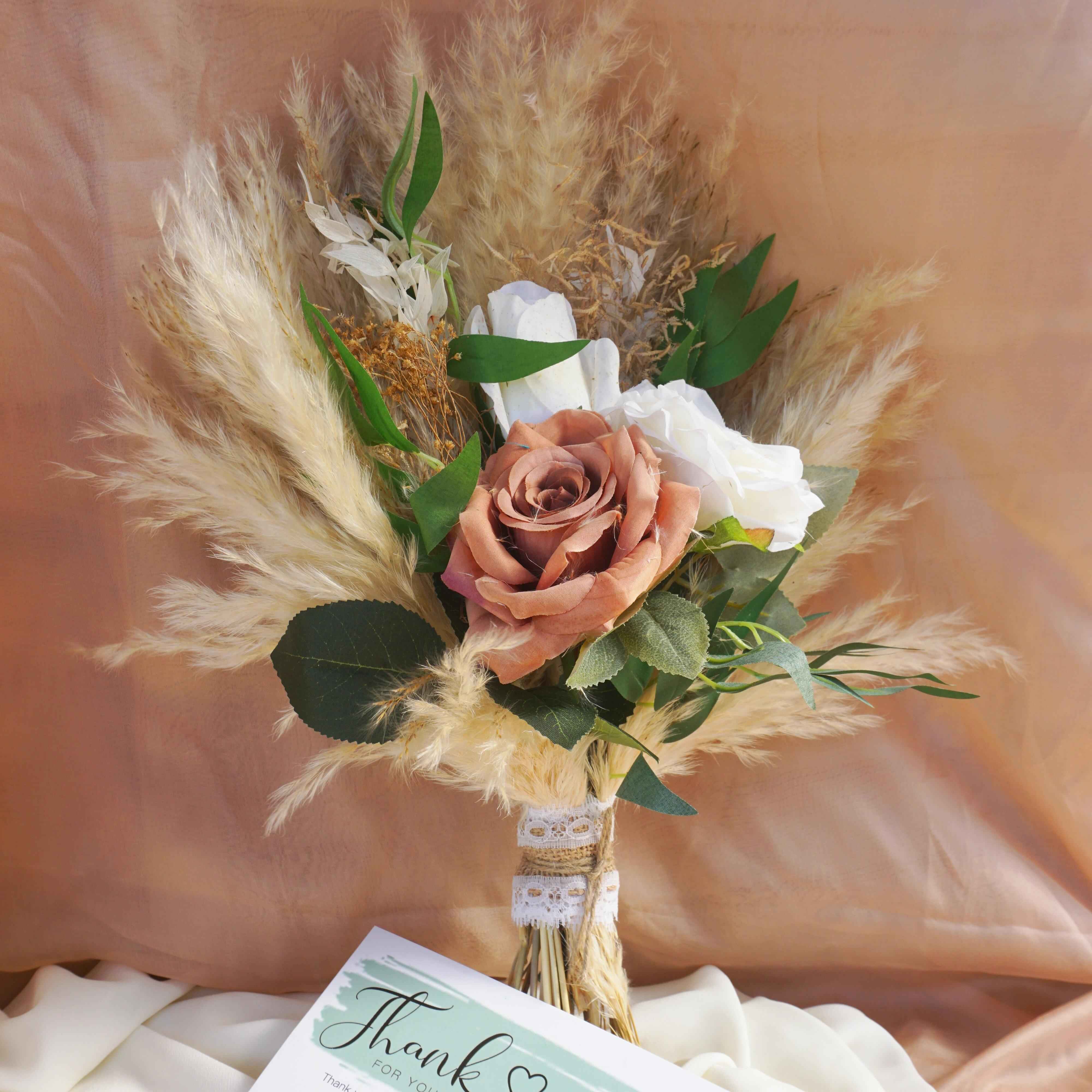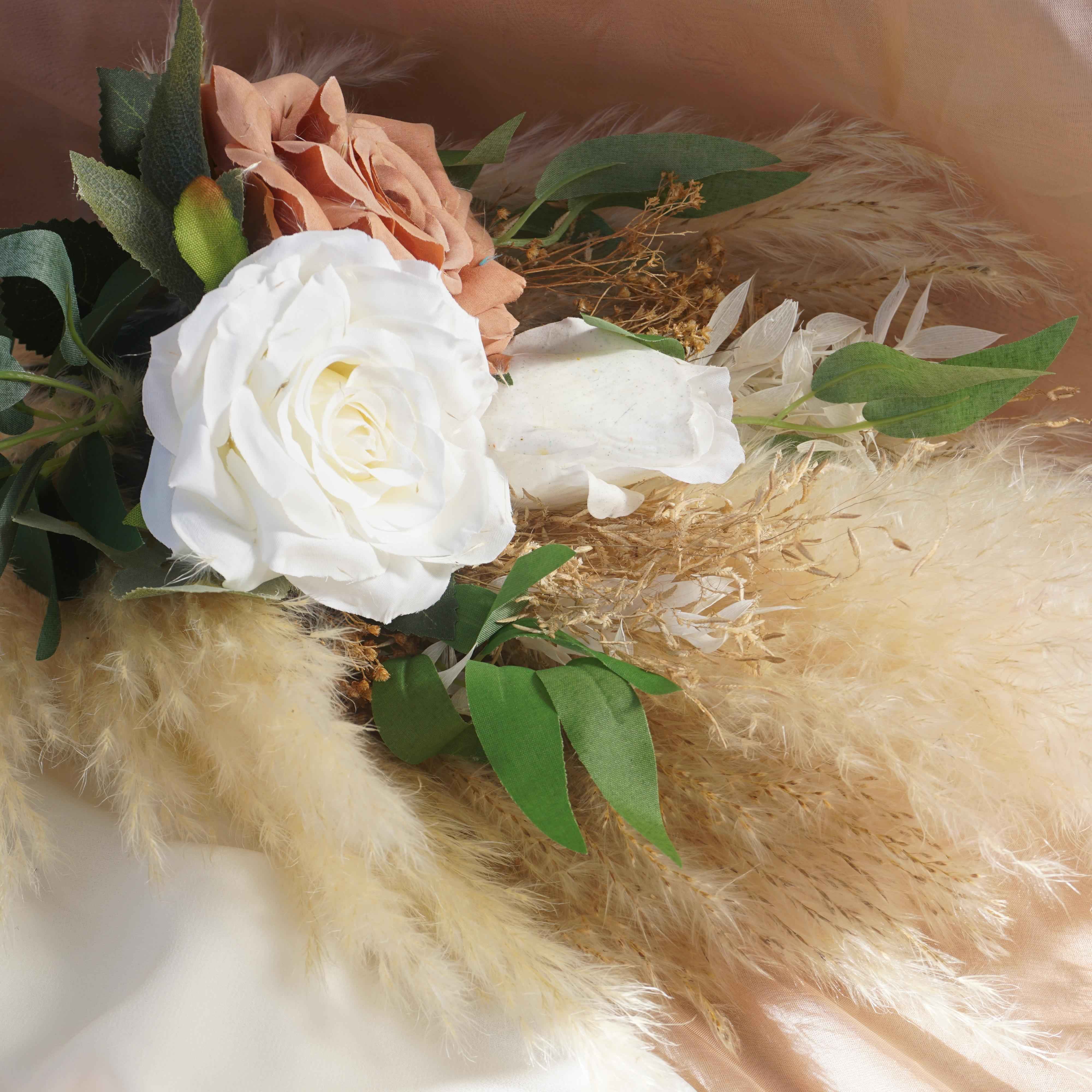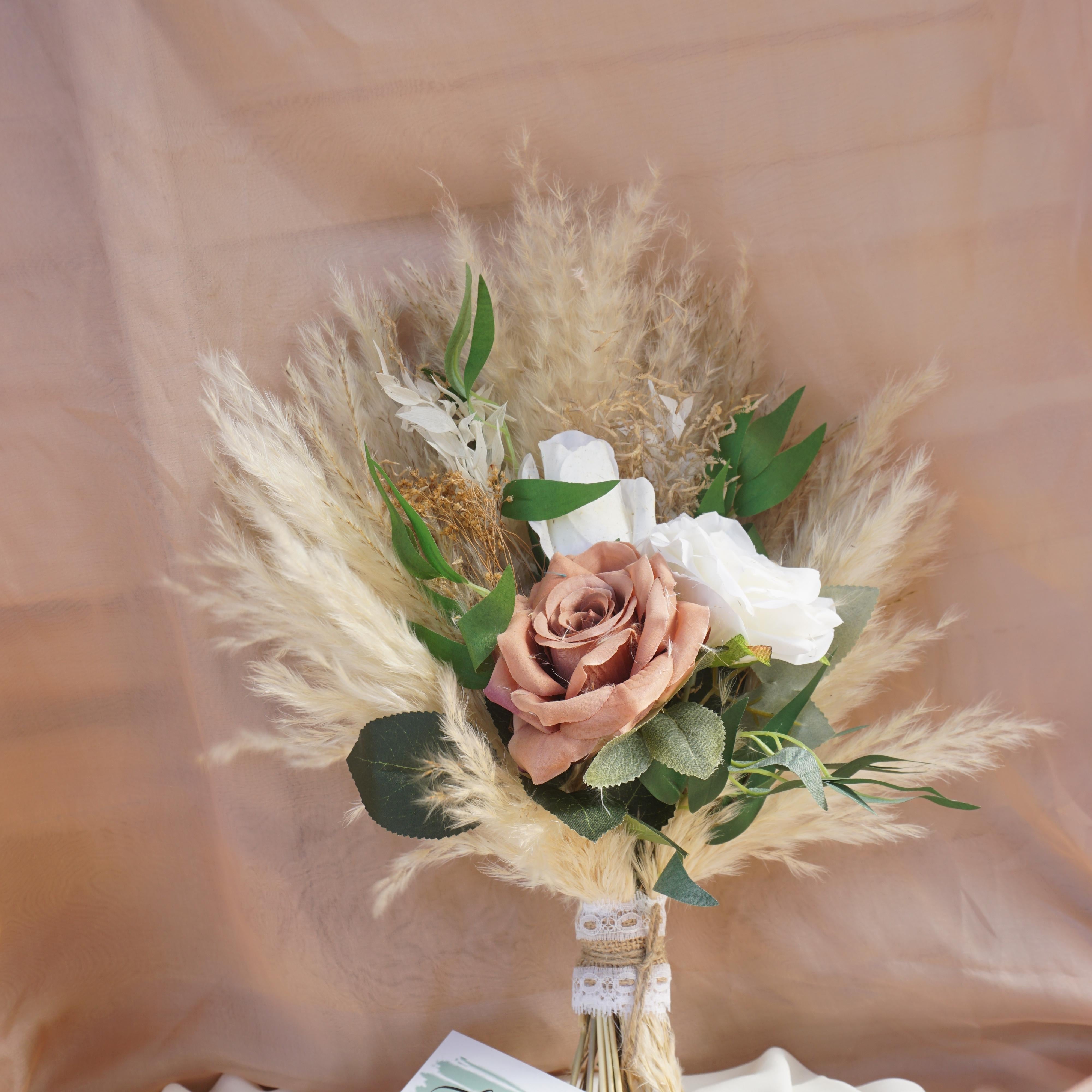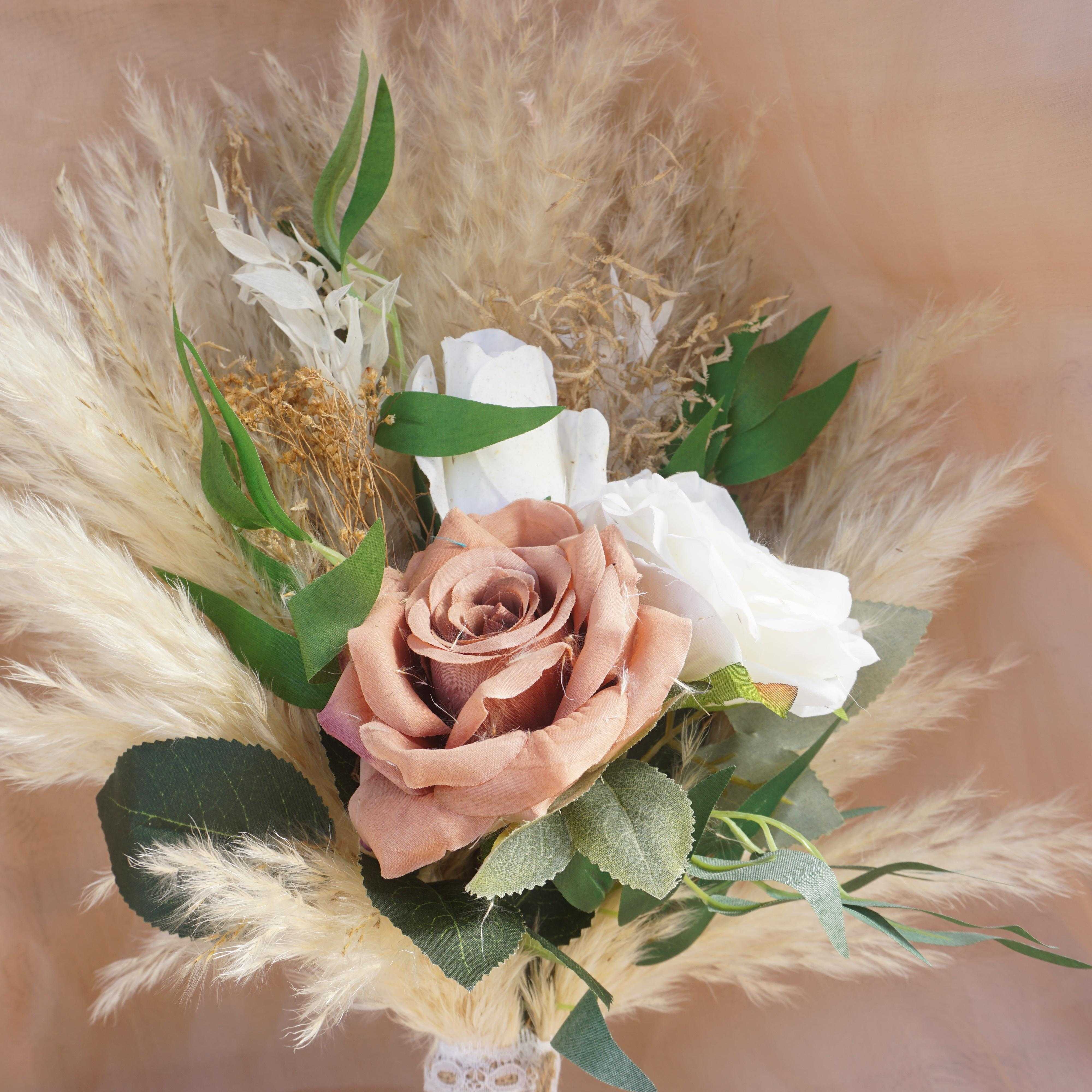 pampas grass,Artificial rose flower,preserved flower and rose ,white dried flower.