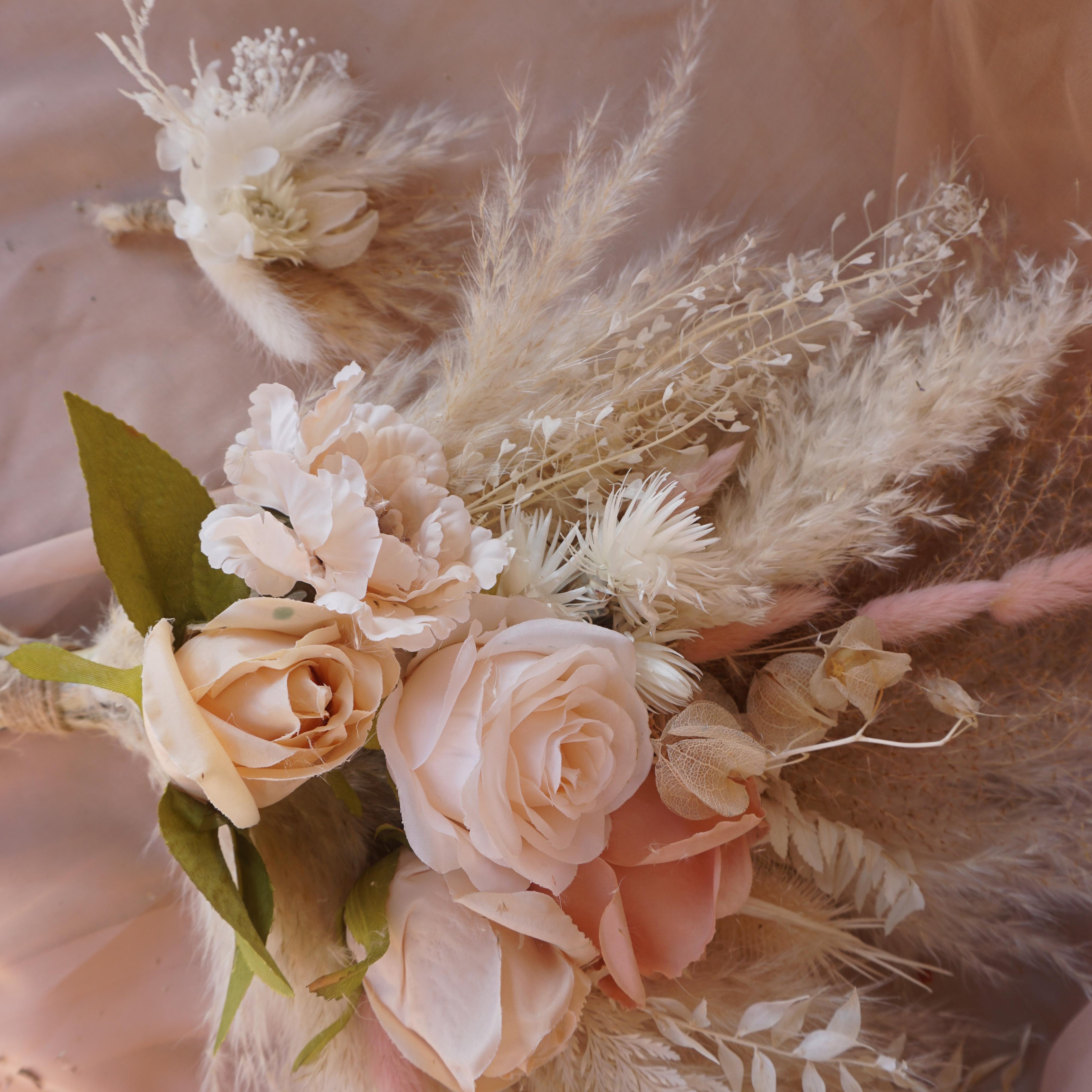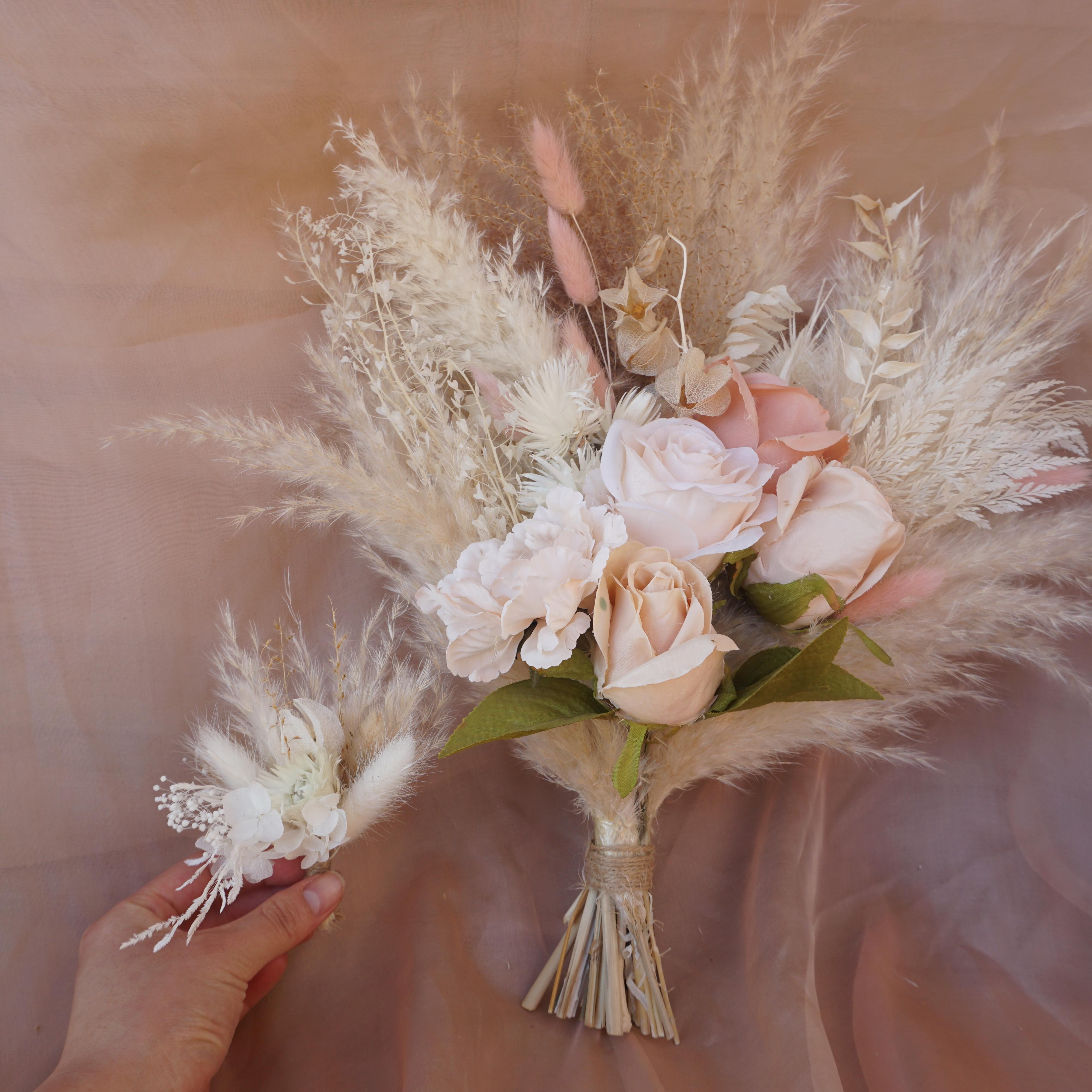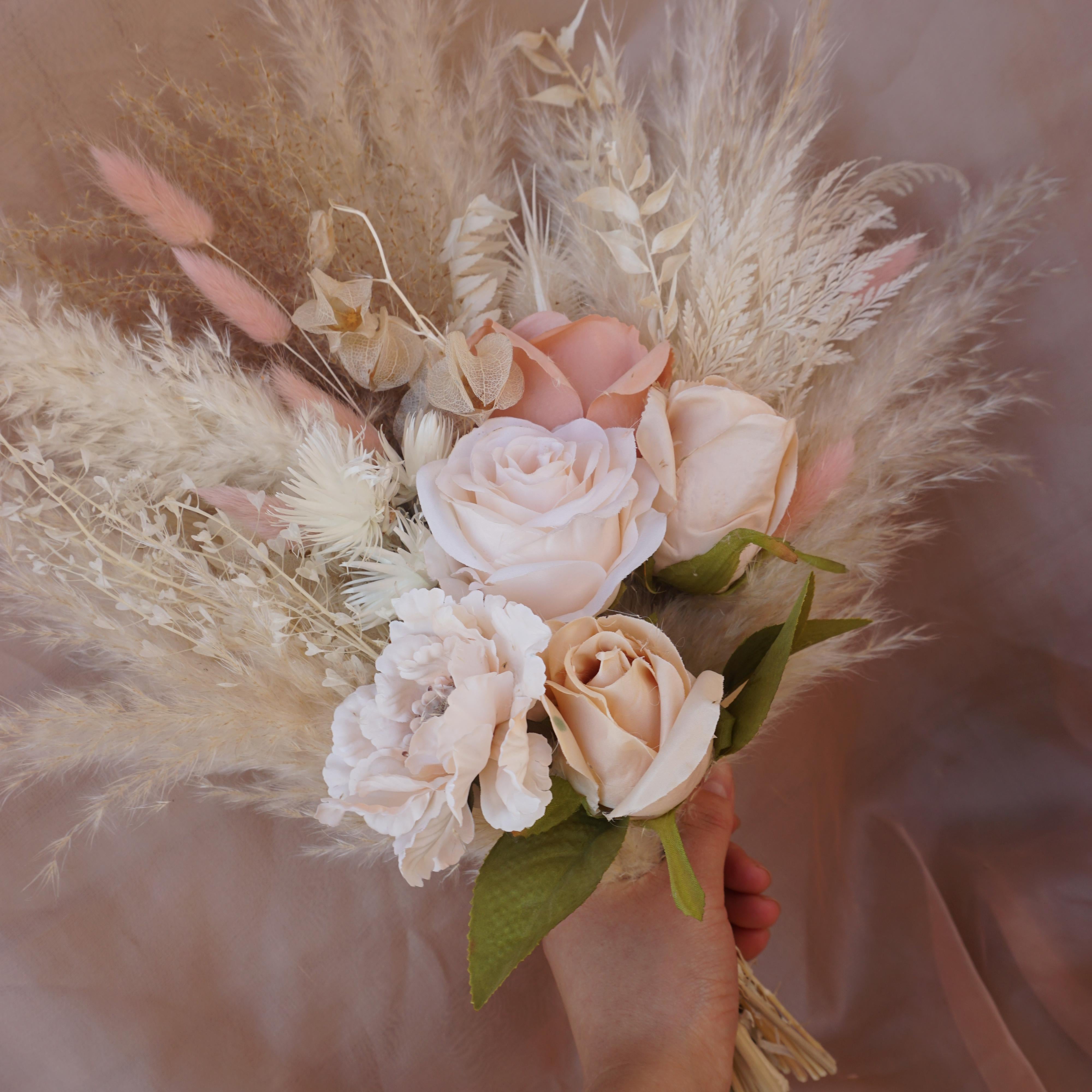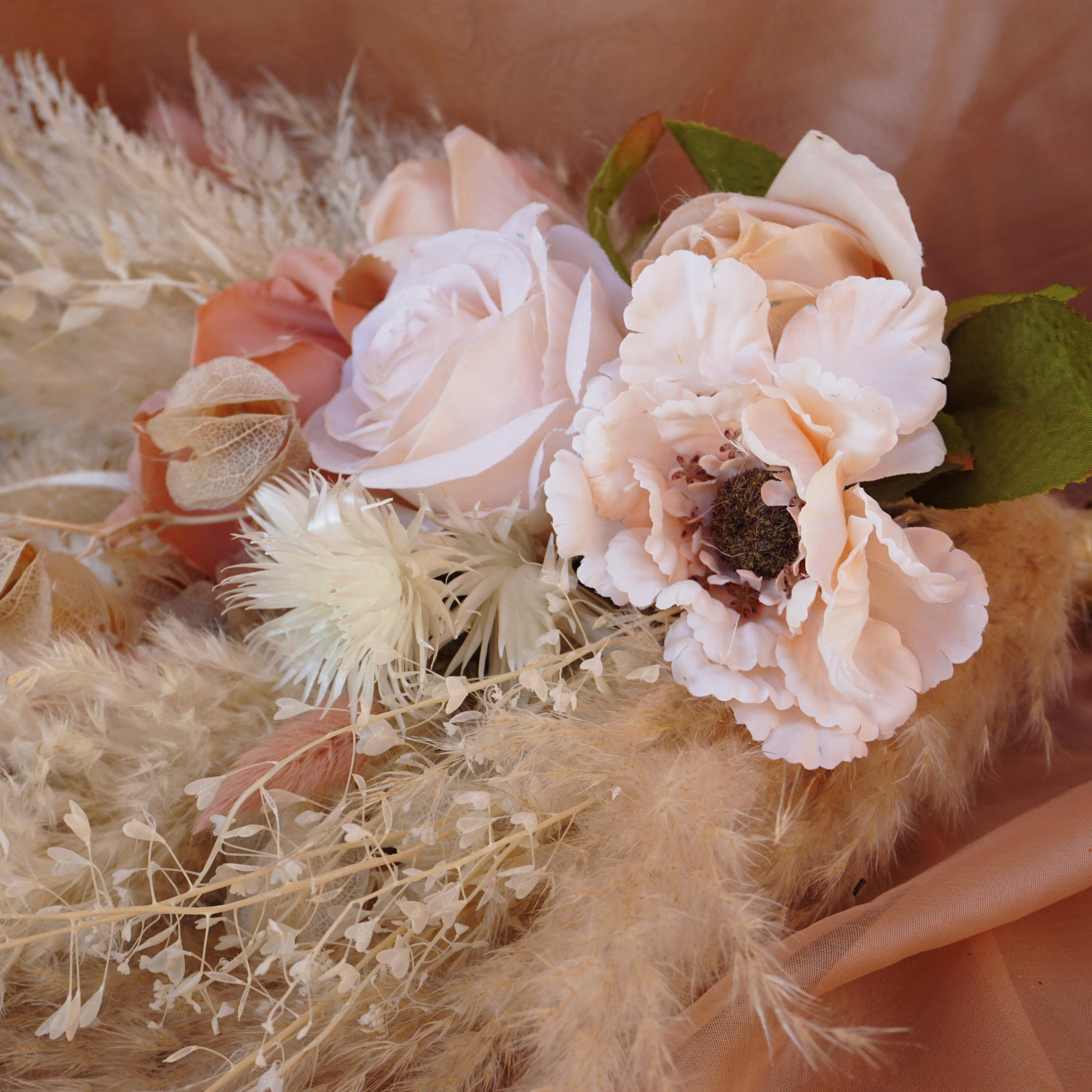 pampas grass,Hydrangea flower,preserved flower and artificial rose ,bunny tails,white dried flower.